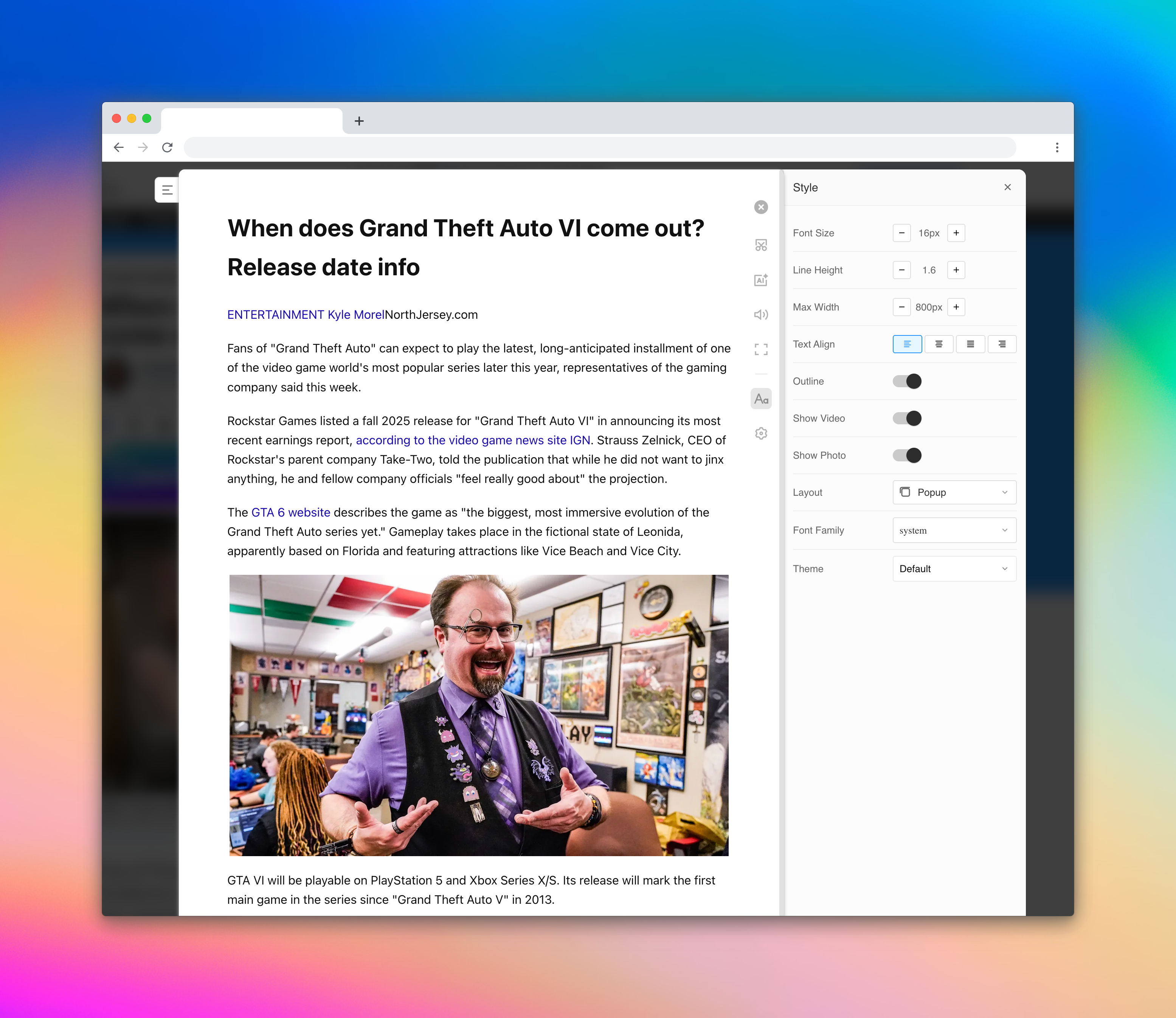 Ever wanted to read an article while still peeking at the original webpage? The new pop-up layout in V4.0 makes that happen. Instead of taking over the whole screen, it opens in a sleek window, letting you reference the source anytime. It’s perfect for research, fact-checking, or multitasking—we wanted to give you more freedom, not box you in.